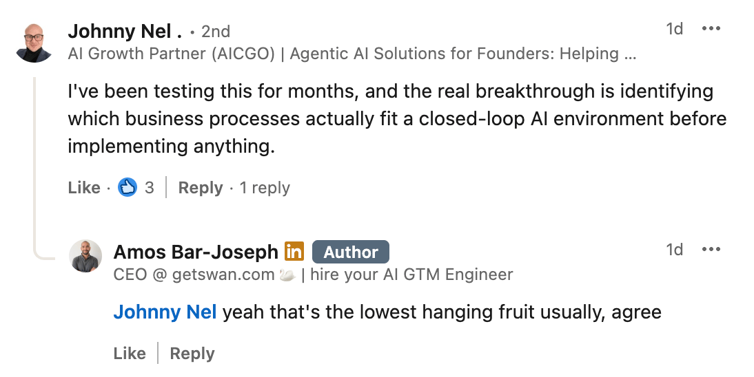 I'm Amos, co-founder of Swan AI. I'm building the first autonomous business and documenting every step. $10M ARR per employee. No bloat. No theory. If that's not the game you're playing, reply to unsubscribe.